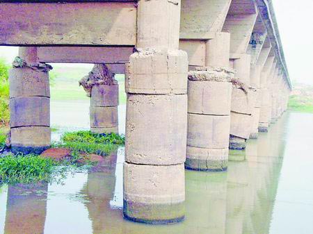 非法采沙,致使横跨大桥桥墩下陷,桥成危桥。