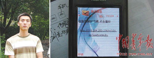 陈回乡后,父亲向他倒苦水:手机中连续收到100多条短信,里面不少有黄色图片和挑逗性语句,为此他多掏了不少冤枉钱。而且,这类短信似乎没有停止的迹象,最多一天甚至收到30多条。