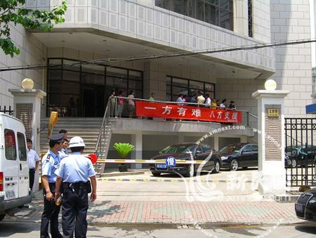 事故现场,闸北区政法大楼。 新民网 沈文林 摄
