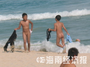 看着大人们都裸体下海,小孩子们更是毫不顾忌