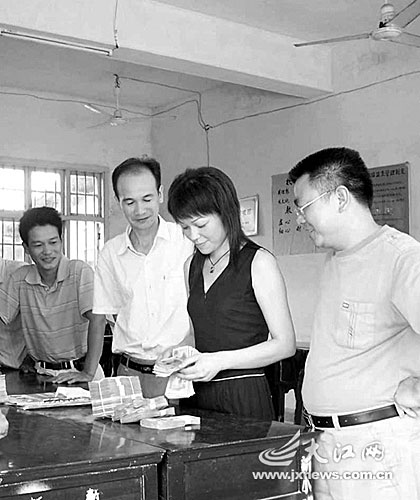 面对意外拾到的15万余元巨款,南城县38岁的女教师毫不动心,悄然把它交给校长。当拿到失款的客商拿出1万元感谢她时,她却分文不要。