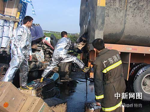 中新网韶关7月3日电(冯昶 李凌 郑忠辉 郑泽煌) 7月2日,京珠高速公路广东韶关曲江服务区内发生一起交通意外,导致装有沥青的槽罐车发生泄漏。当地消防、交警、安监、环保、医护等部门接报后迅速赶到现场处置。