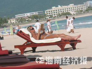 记者连日来在大东海景区看到,有外国女游客在沙滩上或一人或三五成群,穿着泳裤裸露上半身在沙滩的躺椅上晒太阳、看书,泰然自若。或许是因没赶上裸泳时间,没看到裸泳者。