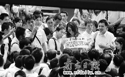 市民宋先生路过华强北时恰好碰上了这一幕。“这纯粹是炒作,用脱衣服的方式太过火了,如果单纯是秀自己就罢了,还搭上一个新闻事件,这对别人不公平,而且这种行为也影响市容。”宋先生说。 (朱丹阳 孙颖)