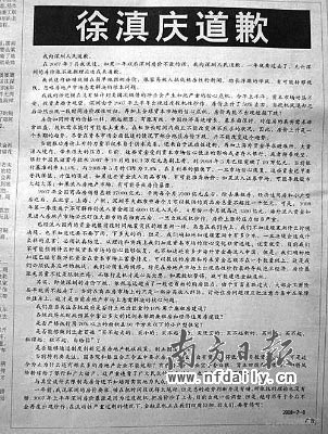 徐滇庆刊登在《南方都市报》上的道歉广告。