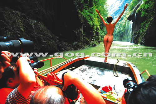 这几天,由中国艺术摄影学会、贵州省摄影家协会联合主办的贵州南江大峡谷全国摄影挑战赛正在举行。来自全国各地的摄影大师、爱好者云集南江大峡谷,在游人如云的风景区内进行被人视为“另类”的人体摄影。