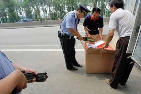 警方对进京车辆进行安全检查。 人民网