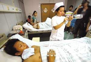 大约过了5分钟,除了现场的四名城管,又赶来十几名城管队员,他们把老俞团团围住。当时正在菜场附近的老俞儿子闻讯赶来。21岁的小俞躺在病床上有气无力地说:“我跑来就说了一句话,你们不要打我爸爸,然后就想拖他离开。可是有城管队员却说打的就是你们!”城管队员围着老俞父子一阵拳打脚踢,小俞说感到眼前一黑,醒来时已经在医院了。医生告诉记者,老俞多处软组织受伤,头部也有骨折迹象。