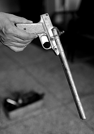 他介绍,平时公安收缴的枪械都保存在一个封闭的库房内。在为几名记者展示收缴的非法枪支时,一公安领导在摆弄一支自制火药枪时,枪支意外走火,“铁砂子”击中地面反弹后,伤及到了在现场拍照的3名记者。