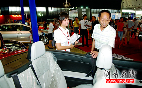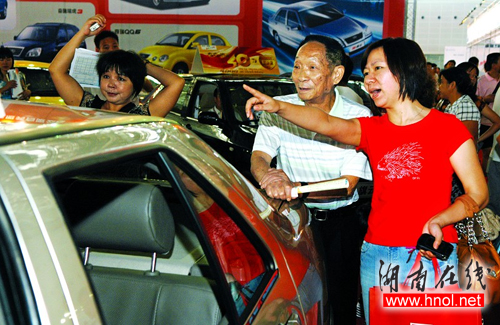2008湖南车展没有让老人失望。上午10点30分,“杂交水稻之父”袁隆平院士,带着一家子,经过1个多小时的挑选后,终于笑言:“心里有底了”。