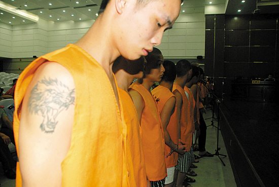 只要加入这一团伙,成员都要在身上文上狼、鹰等图案;在乐清当地一提起该组织的名字,老百姓都会恨得咬牙切齿——昨天,乐清市人民法院开庭审理了特大涉黑组织“狼狗队”,这个涉黑组织41名成员都非常年轻,大部分是1985年后出生,其中10多名成员未满刑事责任年龄,最小的一名年仅17岁。