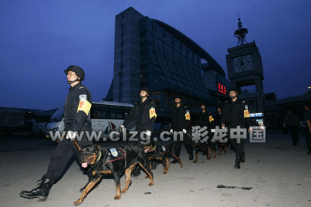 特种警察支队支队长李炎介绍,为确保奥运会的顺利举办,同时也为了给市民及外地游客营造一个安全的社会环境,特警支队目前已派出100余名特警进驻车站码头,将从上午9点到晚上9点,对机场外围、火车站周边及各汽车客运站进行安全防范巡逻。随着奥运的临近,还将陆续增派特警队员参与巡逻防范。