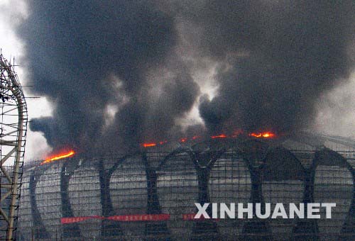 7月27日,济南奥体中心在建体育馆发生火灾。这个体育馆是为2009年在山东济南举行的十一届全国运动会建设的。 新华社记者 朱峥 摄