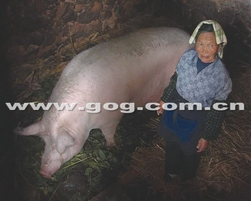 村民们说,这头猪已被主人喂了整整7年。半年前就有人测量过,它的身长有2.3米,高约1.2米,腰围也有2米多,体重为1300余斤。这头猪的主人每天给猪喂的主食是煮熟的玉米面,每天要吃6斤左右的玉米,零食是主人每天给它割的生猪草。