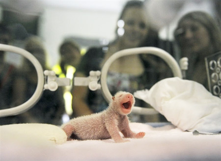 从7月26日17∶24至7月27日06∶55,成都大熊猫繁育研究基地的大熊猫在14小时内顺利产下了三胎四仔宝宝,同一个种群的大熊猫在短短的时间内如此密集地顺利产仔,在全球大熊猫繁育史上尚属首次。这批震后成都首批新生大熊猫宝宝,显得弥足珍贵,意义深远。