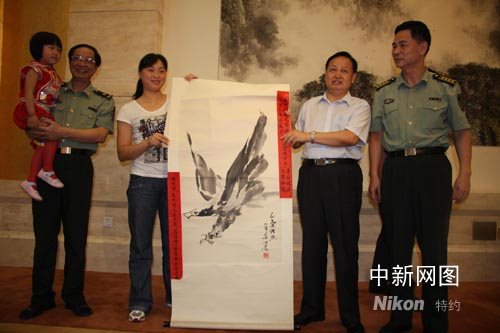 母拉诗易母女向湖北省委书记罗清泉赠送书画作品。 刘宇 摄