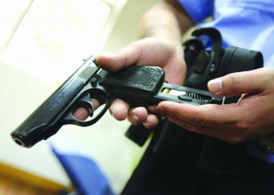 六四式手枪、子弹、辣椒水、手铐、警棍、强光电筒……民警们很仔细地检查着腰带上的警用器械,特别是手枪,他们进行了更为仔细的检查,以便确保扳机放在了保险上。
