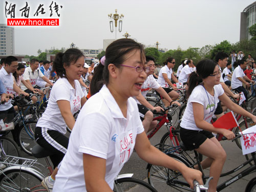 在株洲市委书记陈君文的倡导下,8月1日上午,一场以“助威北京奥运、建设两型社会”为主题的自行车比赛在湖南株洲市炎帝广场举行,当地近千名政府机关职工参与了这场比赛。