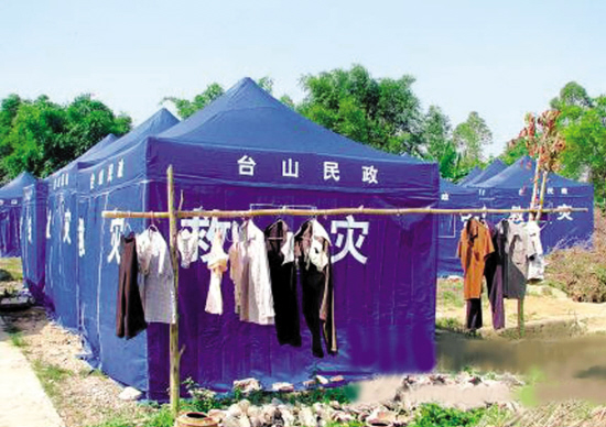 (广东省)台山市那扶镇围仔脚村、长边村等多条村庄自从上月8日起陆续发生地陷,造成村民房屋倒塌,导致9条自然村245间民房出现不同程度的裂缝,63处地陷,地表裂缝19处,水井干涸。江门市及台山市民政部门已及时让受灾村民住进救灾帐篷里。