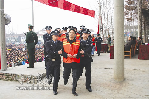 图为:王家雨团伙被公捕 通讯员南靖摄