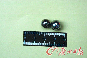 这就是打破汽车玻璃的两颗钢珠。邵权达 摄