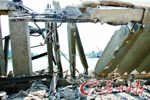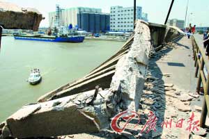 “幸亏撞桥时没有人经过,否则还不知道会被撞成什么样。”大桥边上的玖龙纸业一名工人说。