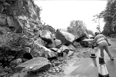 昨天凌晨,(北京市)门头沟区109国道一路段山体发生滑坡,导致该路段阶段性封闭数小时。直到昨天下午,该路段才被完全抢通。