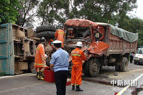 中新网梧州8月23日电(钟易良 王刚)今天中午,广西南梧二级公路梧州藤县塘步路段发生三车相撞事故,造成1人死亡、4人受伤,其中2人被困。
