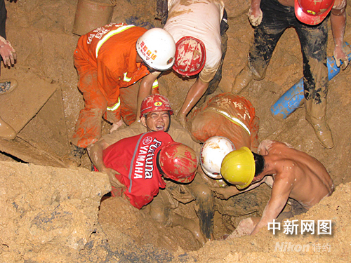8月24日下午16时40分,消防官兵赶到现场时发现,塌方处为约5米长,3米宽、深约5米的深坑,一男子被困在长方形塌陷处正中央,其身上横七竖八地架着木棍和铁皮等物品,此时男子已被泥土淹没了下半身。