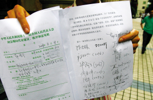 18名全国人大代表先后在《建议书》上签名 记者 刘嵩 摄