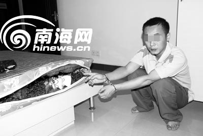 贩毒老大吴忠(化名)指认藏匿在床垫下的毒品。