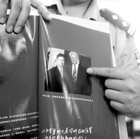 翁鹏宇合成了他与克林顿的照片,印在宣传品上。杜俊岭 摄