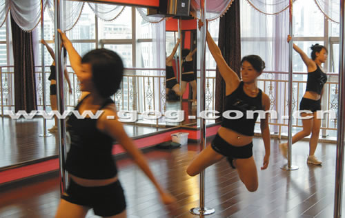 9月2日,夜幕降临,位于贵阳市喷水池某大厦的钢管舞训练房内,强劲的音乐响起,灯光闪烁,5名身穿超短裙的女青年在教练指导下,围着一根钢管上下左右的翻转,她们跳的是——钢管舞。
