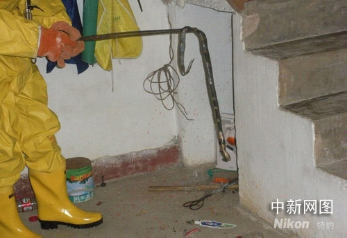 当消防战士们赶到位于北岙镇城西路332弄26号许女士家中时,战士们就发现了蛇的踪影,这条蛇在厨房楼梯间的角落里盘作一团,拇指粗的身体,蛇头不时吐出血红的信子。