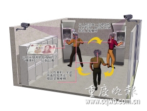 他们商定,先由苏泊羽去存钱,如果没事,再叫邱果拿钱来,喻胜则负责望风。凌晨3时许,苏泊羽戴上假发来到南坪一个银行的ATM机前,低着头,缩手缩脚地将一张银行卡放入,并将3000元假币放入钱槽。