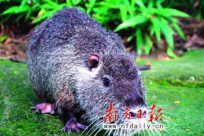 昨日,记者在常平镇隐贤山庄的动物园里看到了这只硕鼠,它身长过尺,浑身横肉,整个身子圆滚滚的,像一只小牛犊;灰黑色的毛又长又亮,如小钢丝般粗;四条腿粗壮而结实,脚趾带有尖利的趾甲,长长的尾巴比大人的拇指还粗。一看到有人靠近,它立即竖起耳朵、直起身子、瞪圆眼睛,一副随时进攻的样子。