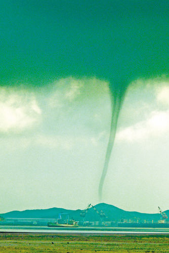 “太壮观了!龙卷风在海面上吸起500多米高的水柱,一时间水柱和天上的乌云连接在一起。”第一次看到“龙吸水”奇观的虞先生在电话中依然显得特别兴奋。昨天上午10时20分左右,在定海区马岙镇上班的虞先生,远远看到岱山县秀山常石集团附近有一片乌云。不一会儿,乌云中忽然伸出一条黑色水柱,直指海面。随后,水柱越来越粗,并且略微移动。当时他意识到,这应该是龙卷风了,也就是传说中的“龙吸水”!整个过程大概持续了10分钟不到,之后乌云就散去了。