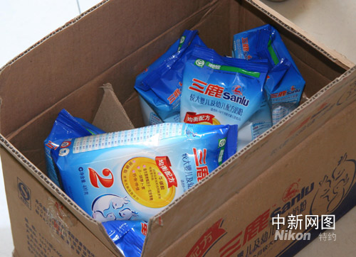 消费者出示要退掉的三鹿奶粉。 高新国 摄