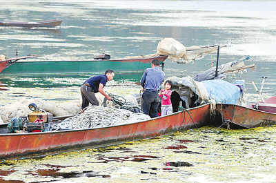 位于阳宗海边的昆明市宜良县汤池镇施家嘴村,当地村民的生活与阳宗海息息相关。记者看到,这里随处可见的是昆明、玉溪两市政府对阳宗海实施“三禁”的通告:禁止饮用阳宗海水;禁止在阳宗海游泳;禁止捕捞阳宗海的水生产品。通告的签发日期是9月17日。
