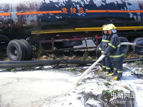 据了解,鄞州中队接到报警后,立刻出动3辆消防车和15名消防官兵赶赴事故现场。12时57分,车辆和人员到达事故地段,同时,区公安、安监、环保等部门也随即赶到事故现场,并马上由公安和消防部门立即在距离事发点100米外拉起警戒线,采取隔离措施。交警部门果断采取措施,当即封闭了高速公路上部分通道,环保部门也不定时地对事故现场的环境检测。