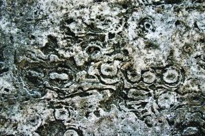 在银库东面的墙面上,刻着道道曲线、直线、粗线、细线,交错纵横,初看极像一幅巨大的军事地图。尽管历经风雨沧桑,高6米,长10米的图案中有些地方已风化剥落,但仔细琢磨,人们又可以发现那一道道走势神秘的线条和大小不一的圈圈点点似乎蕴含着某种规律。它们有的在暗示流经始兴的浈江与墨江沿途的流向,有的则在影射宝塔山伟岸之躯的方位。