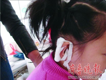 王女士赶紧带孩子赶到聊城市第二人民医院,急诊室医生称孩子耳朵撕伤较重,需住院治疗。医生通过麻醉手术成功为小雨的右耳进行了缝合。小雨的父亲张先生告诉记者,孩子右耳后与头皮连接处皮肤裂伤长约3厘米,并且已伤及皮下,医生为孩子缝了四针。张先生说,事件发生后第二天,小雨班主任委托其家人送来了1000元钱,但其本人一直没露面,这两天他们打电话时王老师的电话也打不通了。