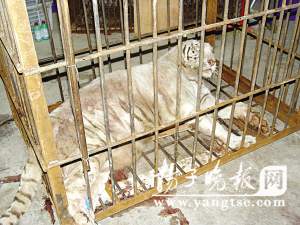 图为受伤的白虎身下满是鲜血。 陈力军 张战斗 摄
