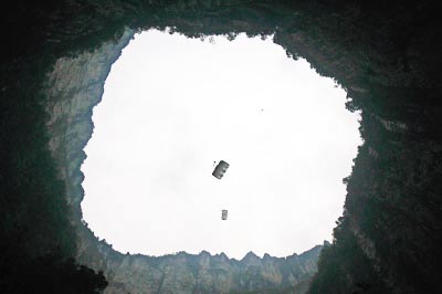 据悉,因天坑底部有暗河,组委会在暗河上布了接收网,崖壁上、坑底都有紧急救援小队随时救助。