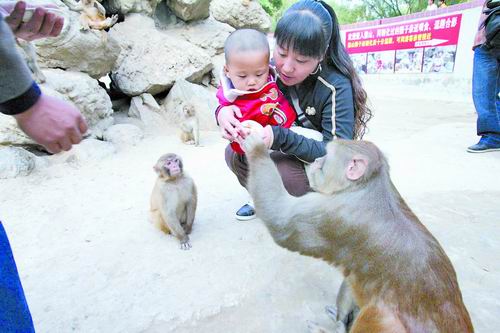 “每次过完节后,好多猴子都要得上厌食症。”猴山饲养员吕师傅介绍说,刚刚过去的国庆长假,众多热心游客在来观看猴子的同时,也带来了很多零食,如香蕉、爆米花、方便面等。