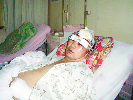 “就是那帮晚上在村里乱倒建筑垃圾的家伙!他们冲上来认准了我就打,还恶狠狠地撂话说要制服我这个不怕他们的人!”昨晚,正在医院接受治疗的鱼化寨二府庄村治保主任项建宏身上缠满了绷带,他睁着青肿的双眼,向记者诉说不久前发生的那一幕时仍是异常气愤。