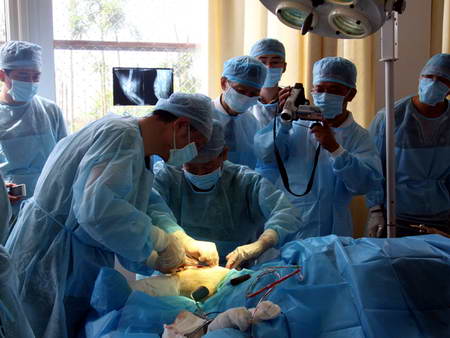 10月8日上午10时30分缘小被抬进手术室,专家们为缘小实施了手术。手术历时近三个小时,由于受伤时间较长,断骨端形成骨痂给手术带来一定困难。在将断裂的骨头成功对接后,专家们又用目前最为坚固的钛合金钢板进行了固定。下午14点左右,缘小重新回到了自己养伤的单间。