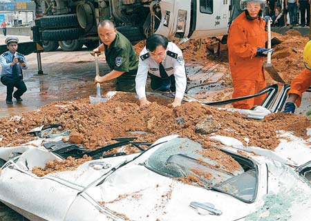 据记者回忆,10月10日上午10时50分左右,在深圳市北环大道西行方向南山立交路段,一辆泥头车突然失控翻车,将旁边一辆白色轿车压扁。事发后,市交警局局长刘凤俊及时赶到现场组织指挥救援。救援人员调来两辆大型吊车,吊住泥头车首尾两处,试图将泥头车吊起。但刚启动吊车,救援人员就发现泥头车装载的泥土太重,很可能会掉落下来将轿车埋住。经现场研究,救援人员决定先挖出部分泥土后,再吊起泥头车。现场十几名救援人员迅速拿来铁铲与锄头,开始挖土。刘凤俊冲到泥头车前,因没工具了,他就用手不停地挖泥土,并大叫:“加油挖啊!”在刘凤俊的带领下,现场的几十名救援人员一起用手刨土救人,最终从车内救出一名女婴。