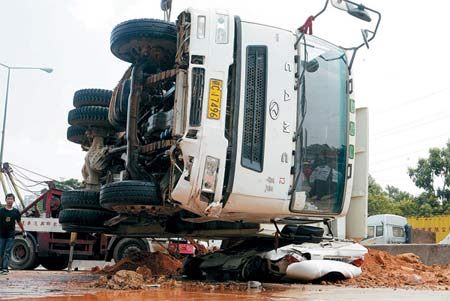 一泥头车压扁轿车致2死1伤,轿车内一女婴在母亲身体庇护下奇迹生还。