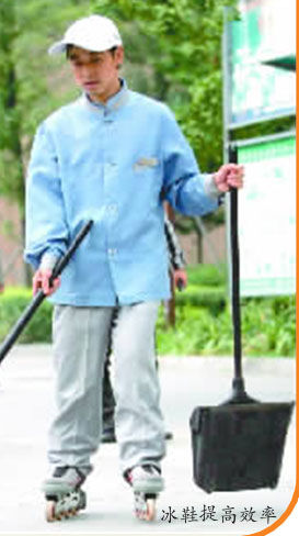 昨日,有患者报料,华西医院有一名穿旱冰鞋的清洁工。记者昨日在医院找到正穿着旱冰鞋在院区内穿梭的“最牛清洁工”小谢。据了解,谢会军今年28岁,家住高新区。据小谢介绍,自己接触轮滑已有8年,他负责医院花园、院区清洁工作,因穿冰鞋提高了效率,一个人可干7、8个人的活儿。地震时,许多外国医疗队的“老外”也夸他“厉害”。(记者 刘坤 摄影 李祥云)